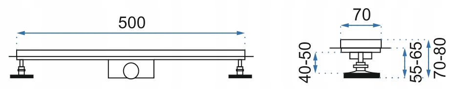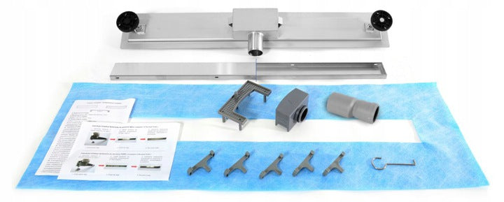 Zastosowane nóżki dają możliwość pełnej regulacji wysokości odpływu do potrzeb i możliwości montażu. Minimalny zakres regulacji to 52 mm a maksymalny 68 mm. Niski profil wynoszący 52 mm to aktualnie najniższy na rynku dostępny odpływ liniowy.