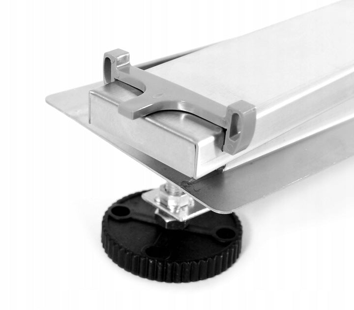 Zastosowane nóżki dają możliwość pełnej regulacji wysokości odpływu do potrzeb i możliwości montażu. Minimalny zakres regulacji to 52 mm a maksymalny 68 mm. Niski profil wynoszący 52 mm to aktualnie najniższy na rynku dostępny odpływ liniowy.