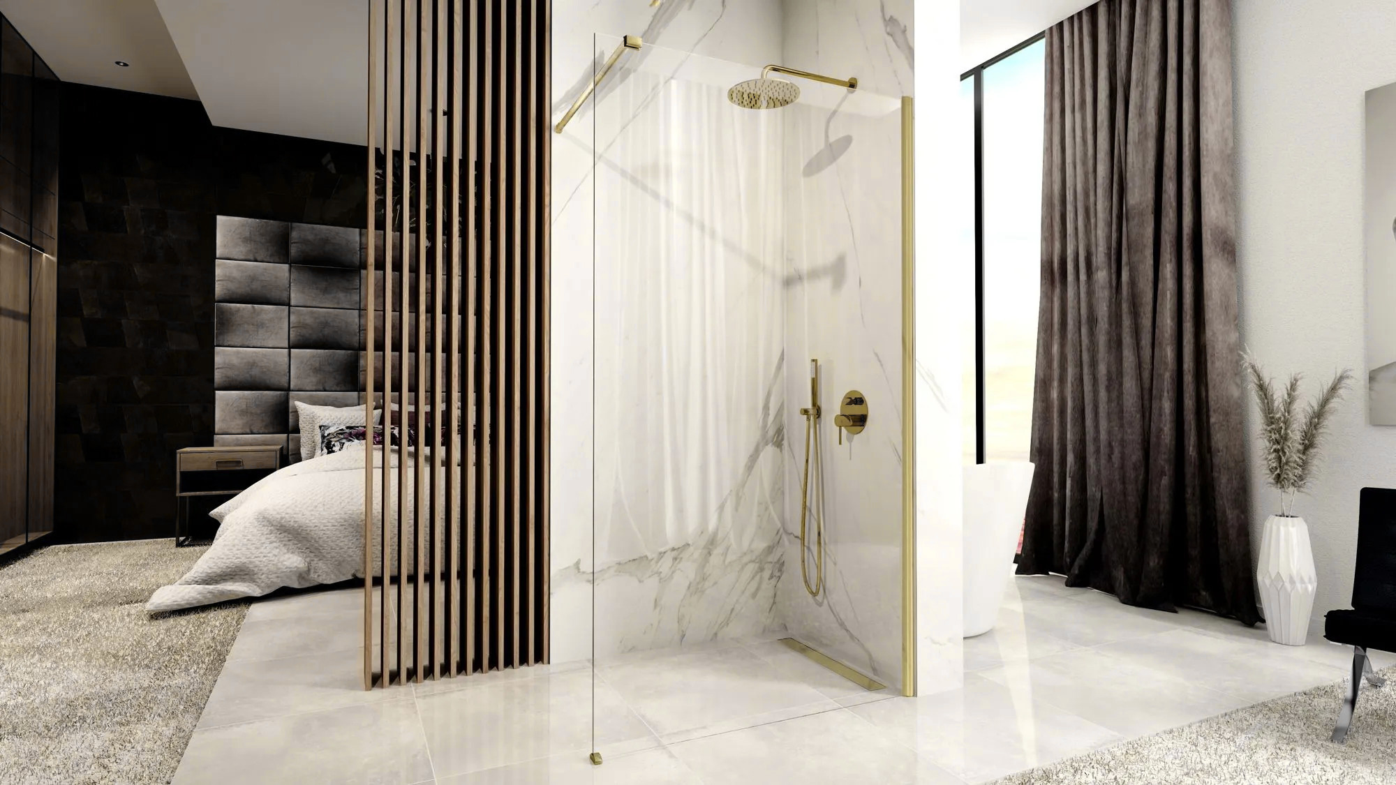 Ścianka AERO 110 złota mat prysznicowa szyba 8 Rea