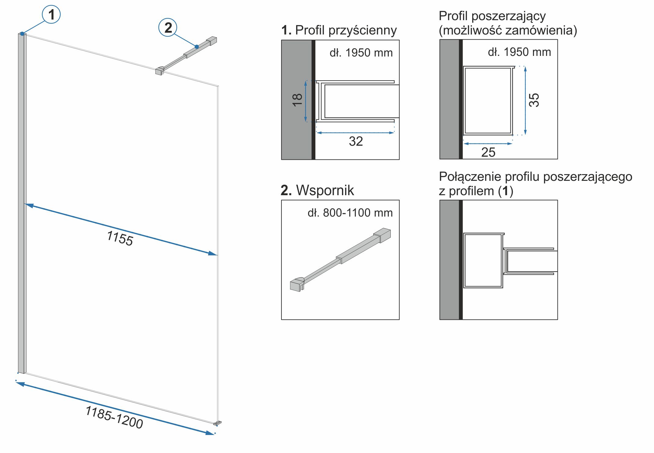 Ścianka AERO 120 złota mat prysznicowa szyba 8 Rea
