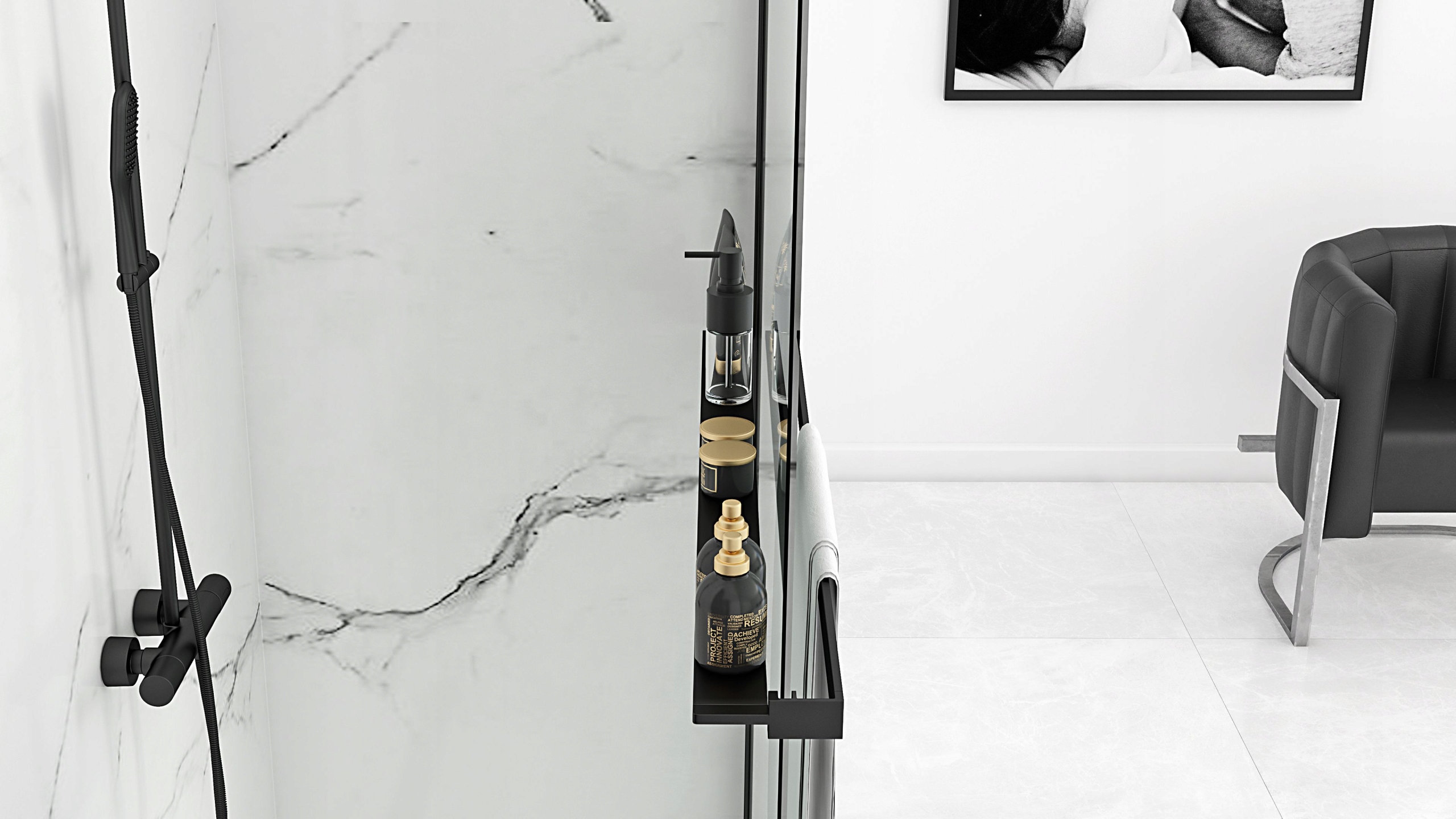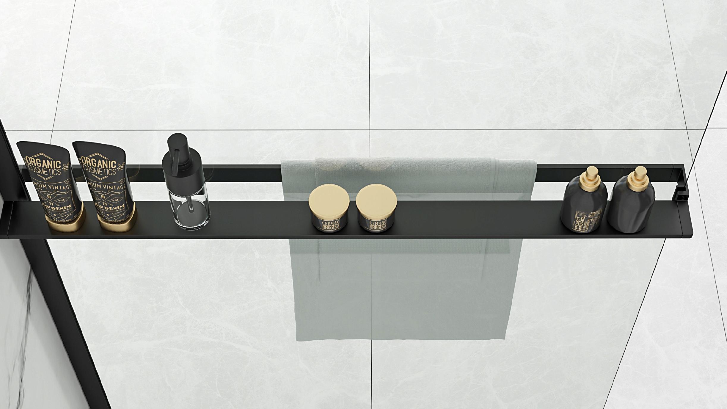 Ścianka AERO 80 czarna prysznicowa z półką wieszak
