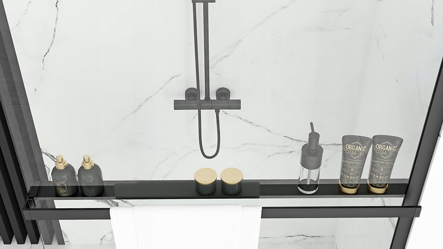 Ścianka BLER 100 prysznicowa czarna półka Walk-in