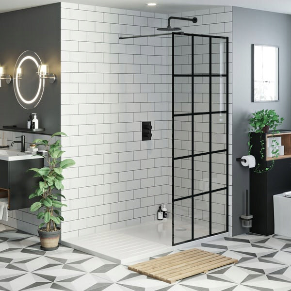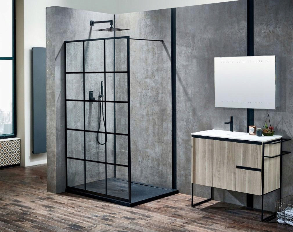 Ścianka SOLEO 100x195 prysznicowa czarna kratka