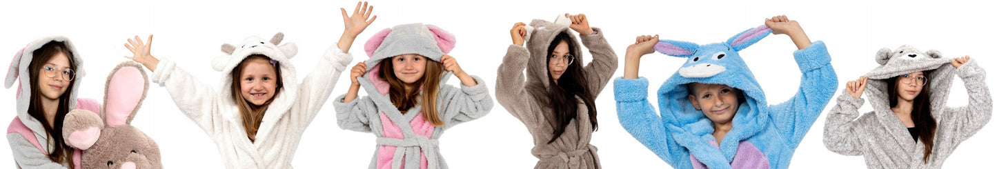 Ultra miękki i przytulny szlafrok dziecięcy z kolekcji Animals. Pięknie wyszyty kaptur, wspaniałe kolory i detale, sprawią że każde dziecko będzie zachwycone. Szlafrok idealny po kąpieli i na basen.