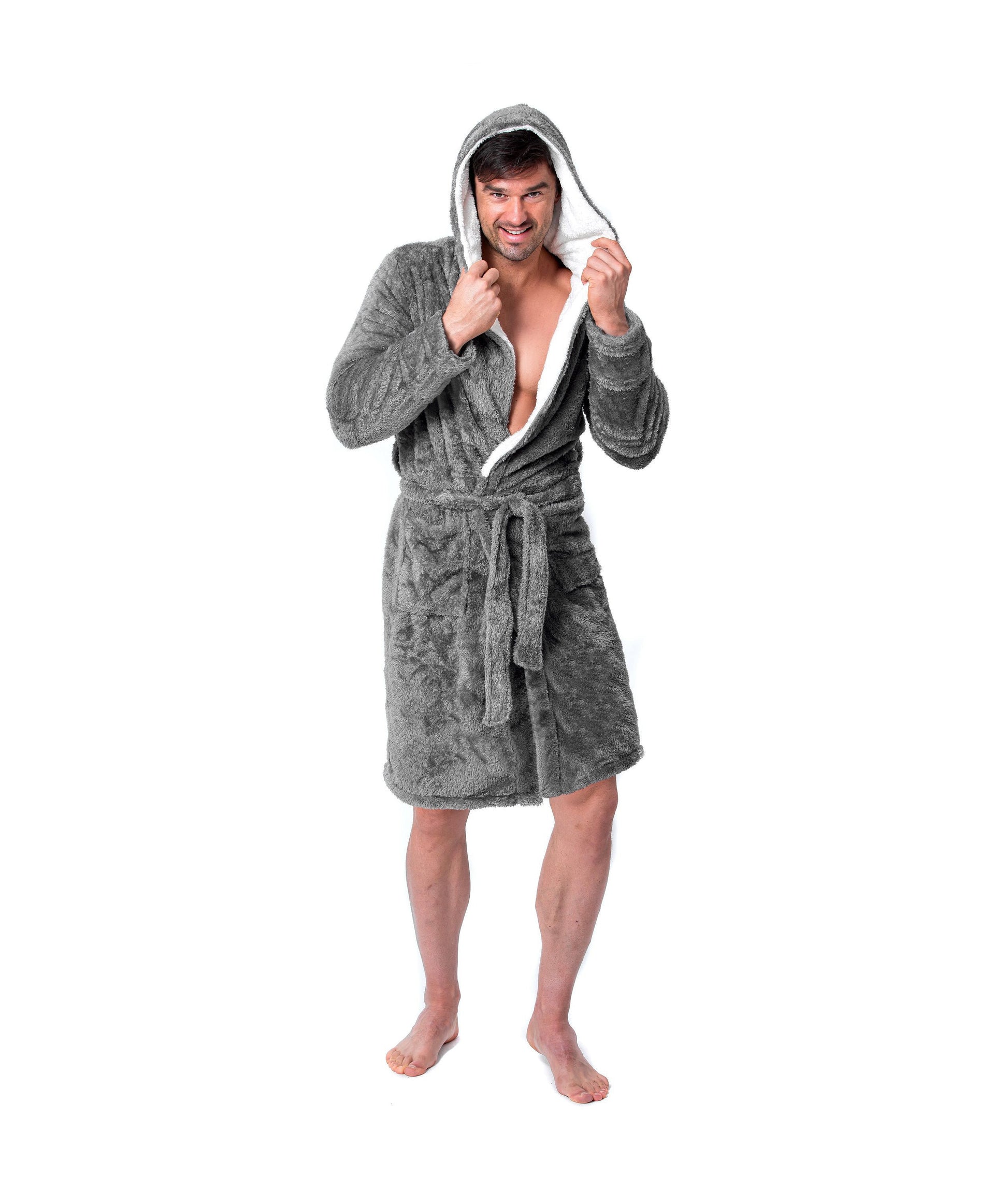 Szlafrok JORDAN L męski szary ecru z kapturem miękki