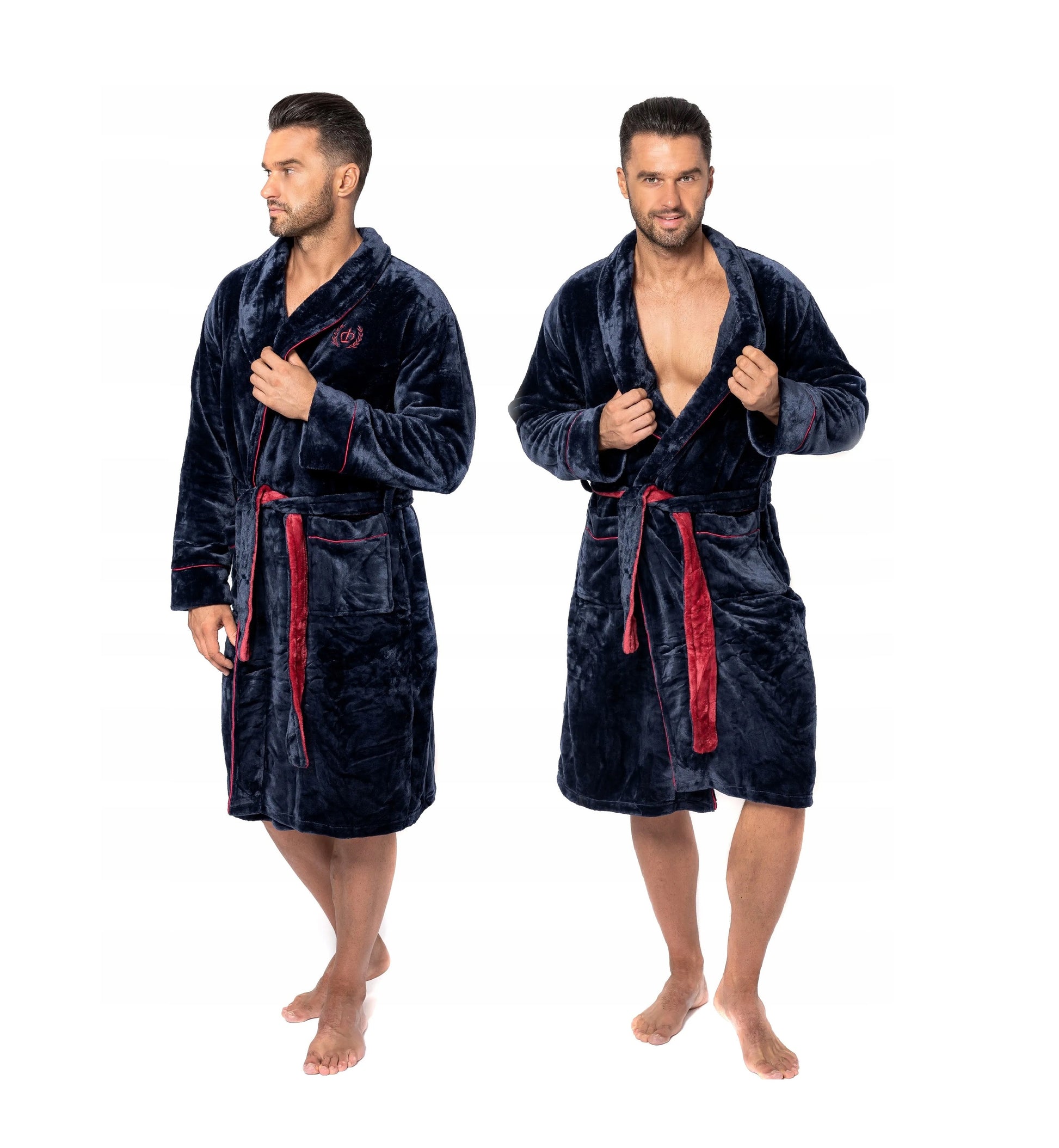 Szlafrok ROGER L męski miękki ciepły granatowy gruby