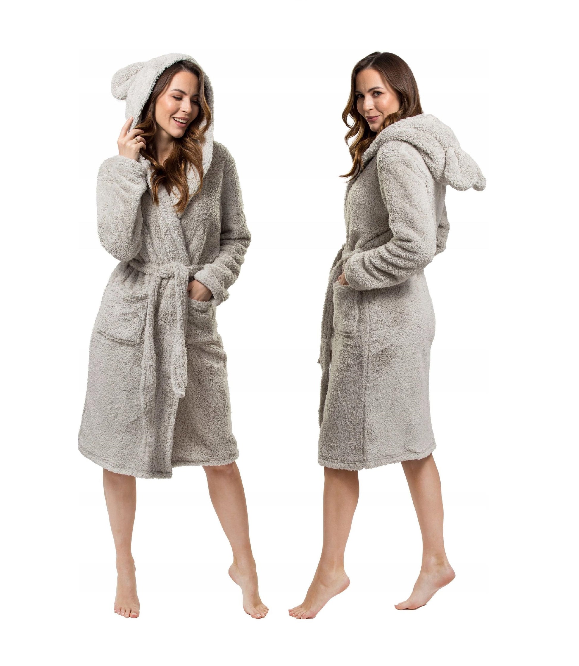 Szlafrok TEDDY S M damski miękki ciepły szary