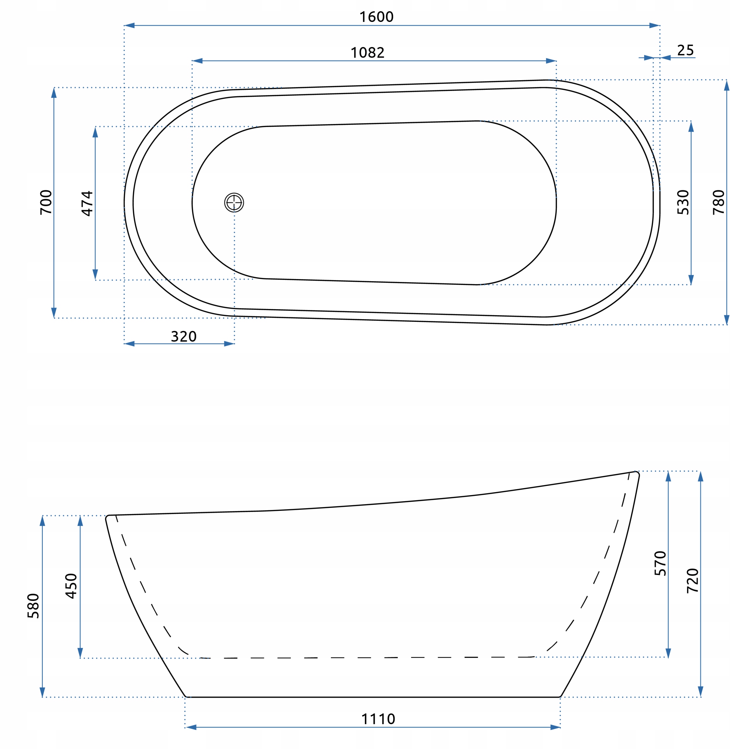 Wanna CORI 160 wolnostojąca akrylowa Rea syfon