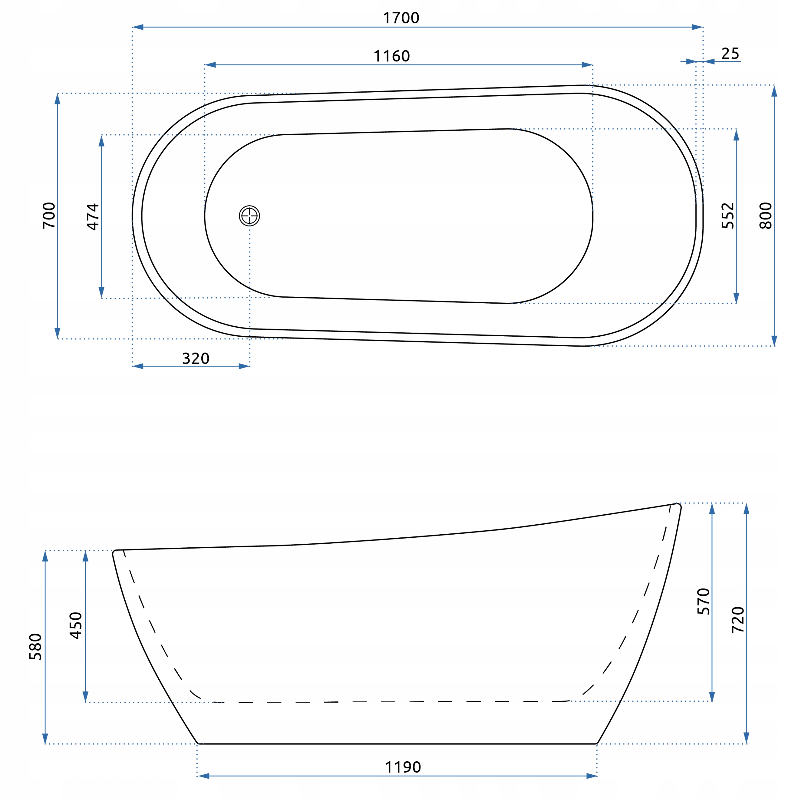 Wanna CORI 170 wolnostojąca akrylowa Rea syfon