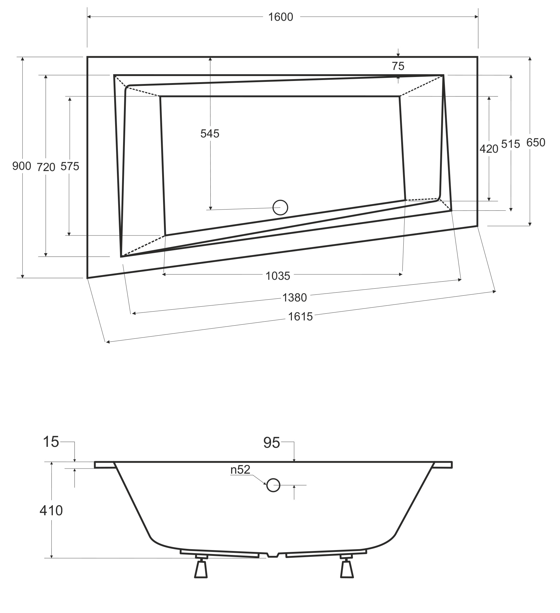 - Typ wanny: pod zabudowę, asymetryczna