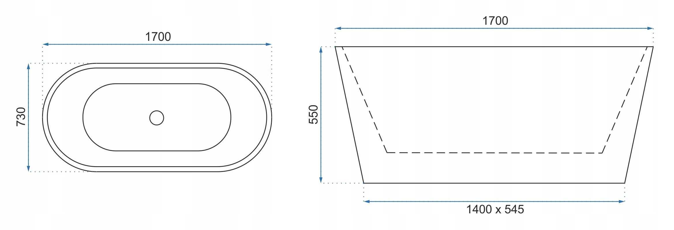 Wanna MILANO 170 wolnostojąca akrylowa Rea syfon