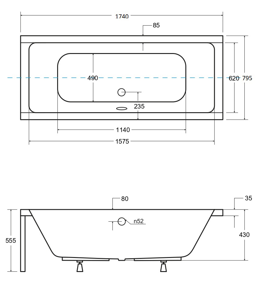 - Typ wanny: pod zabudowę, prostokątna