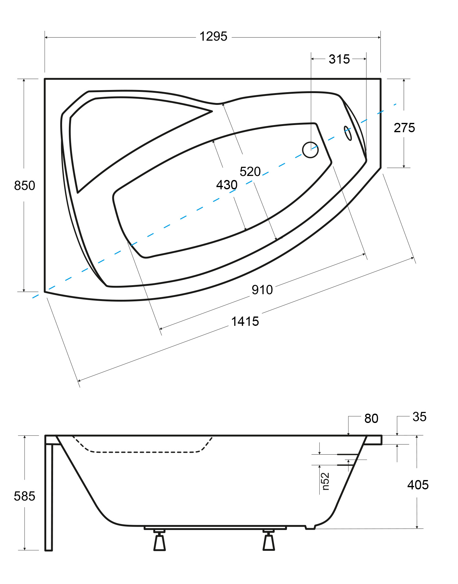 - Typ wanny: pod zabudowę, narożna, asymetryczna