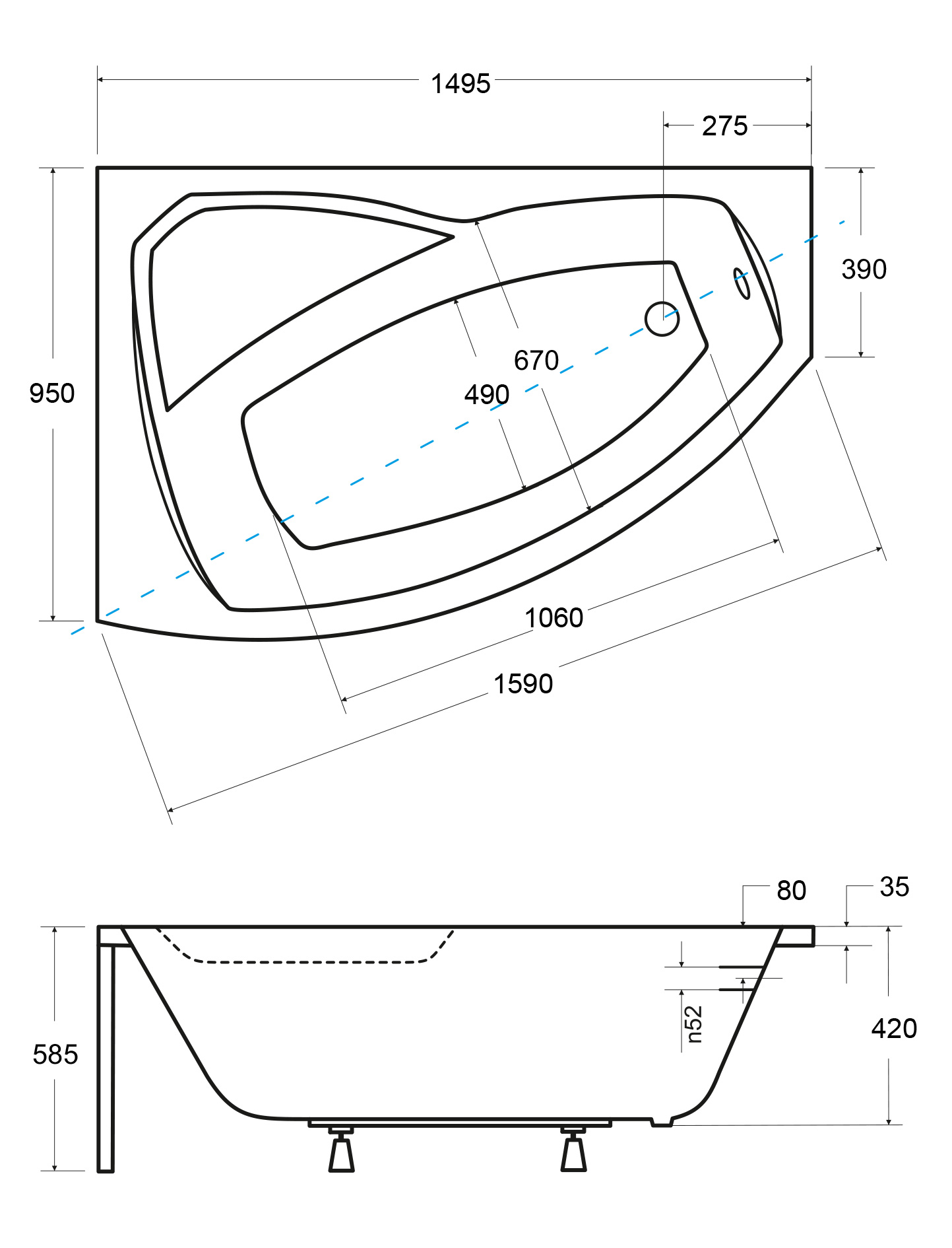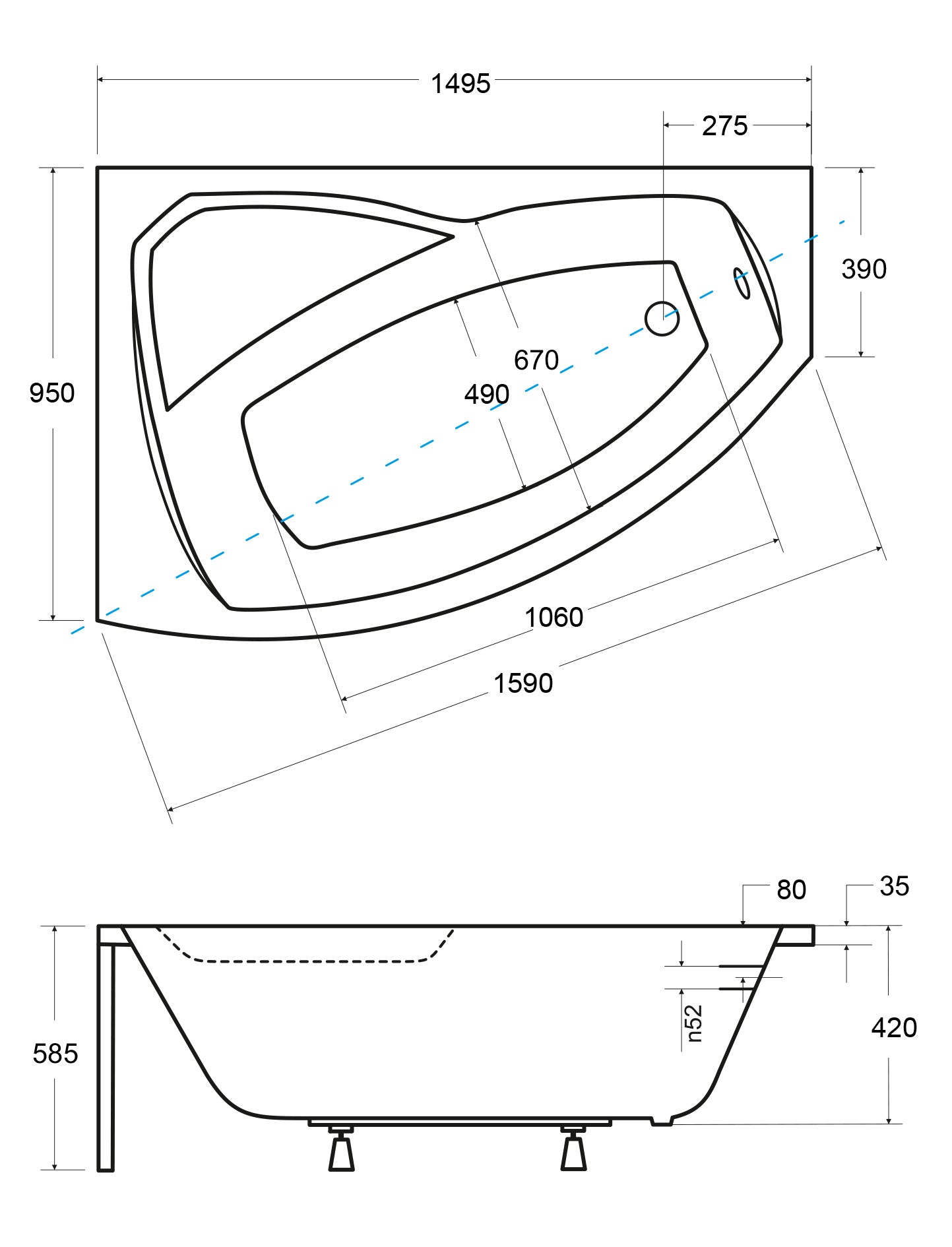 - Typ wanny: pod zabudowę, narożna, asymetryczna