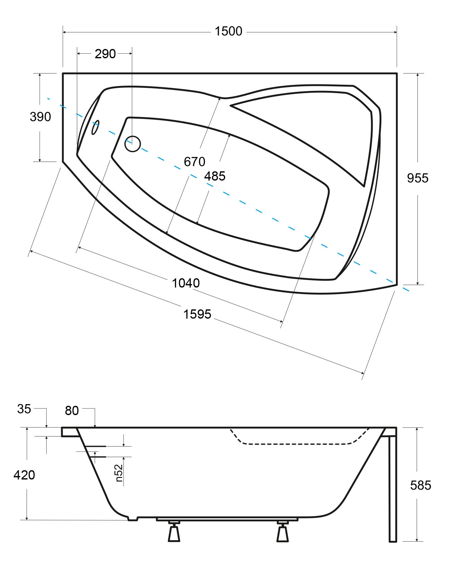 - Typ wanny: pod zabudowę, narożna, asymetryczna