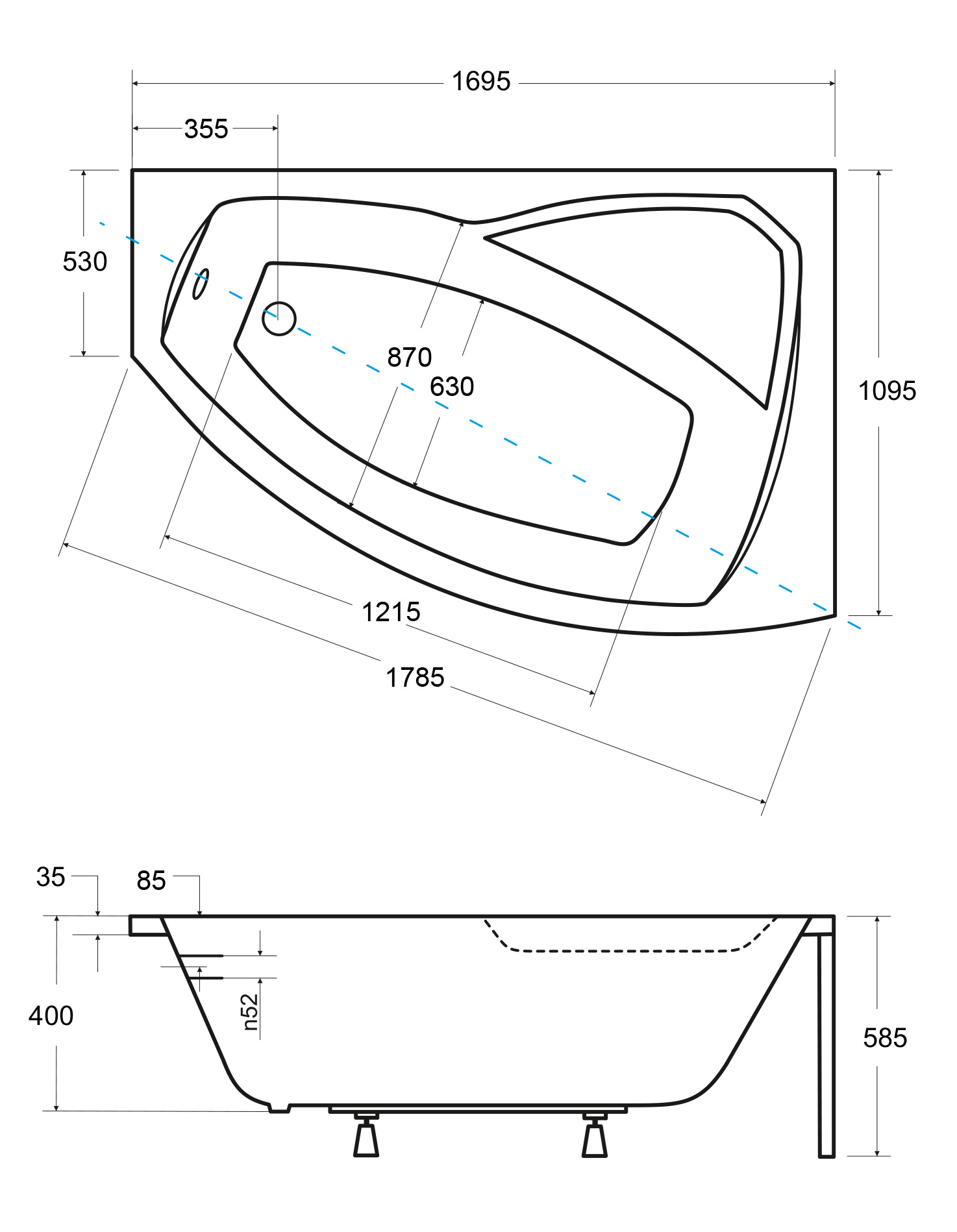 - Typ wanny: pod zabudowę, narożna, asymetryczna