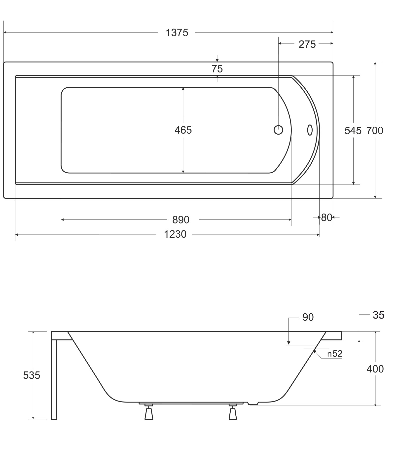 Wanna Shea 140 pod zabudowę prostokątna 126l Besco