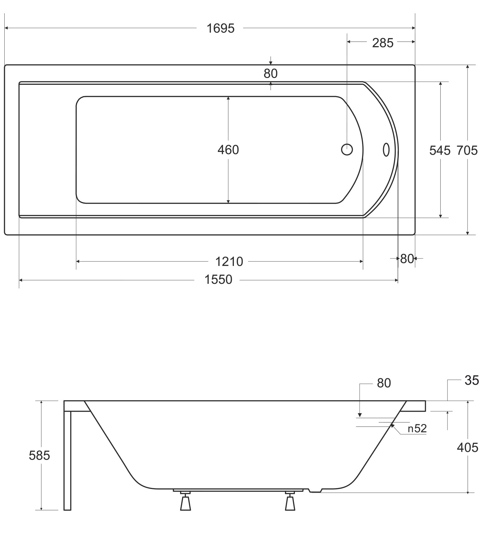 Wanna Shea 170 pod zabudowę prostokątna 180l Besco