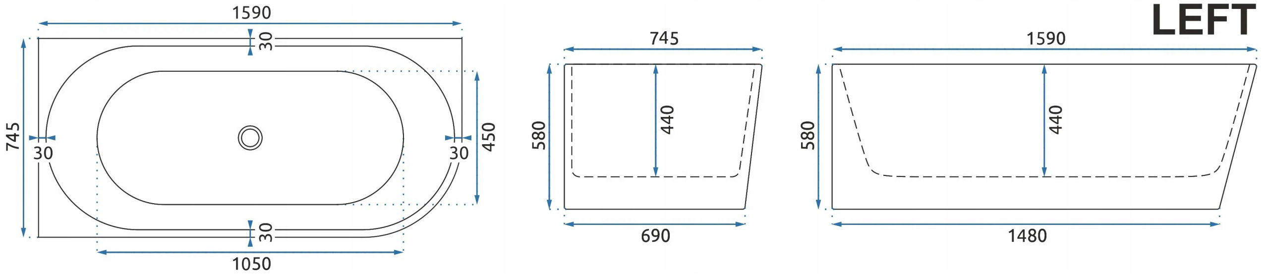 - Orientacja wanny: lewa