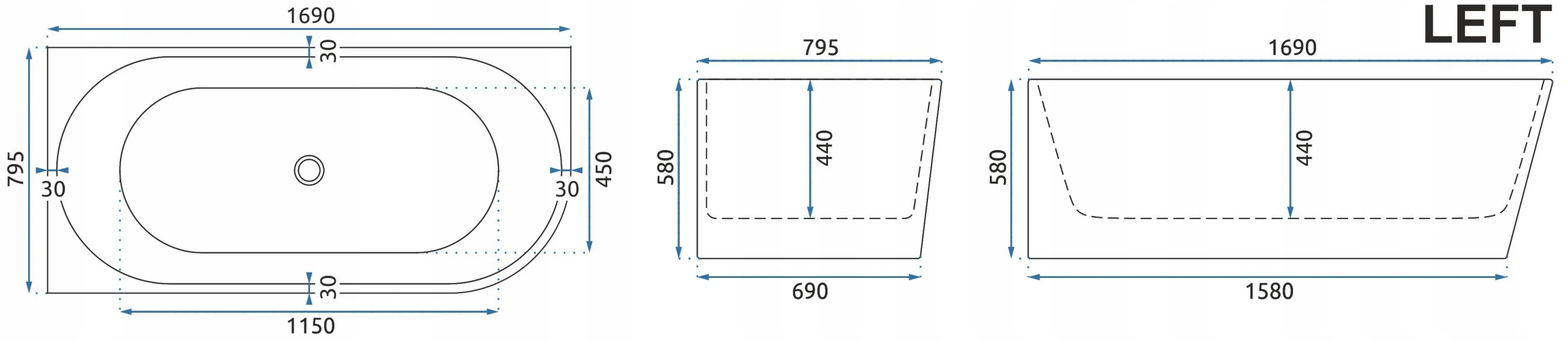 Wanna SYDNEY 170 lewa przyścienna narożna Rea