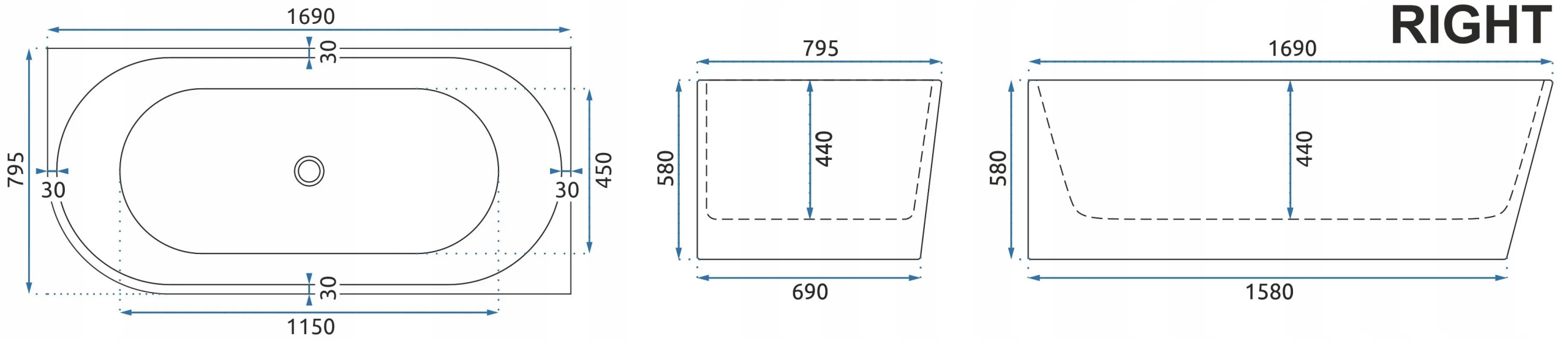 Wanna SYDNEY 170 prawa przyścienna narożna Rea