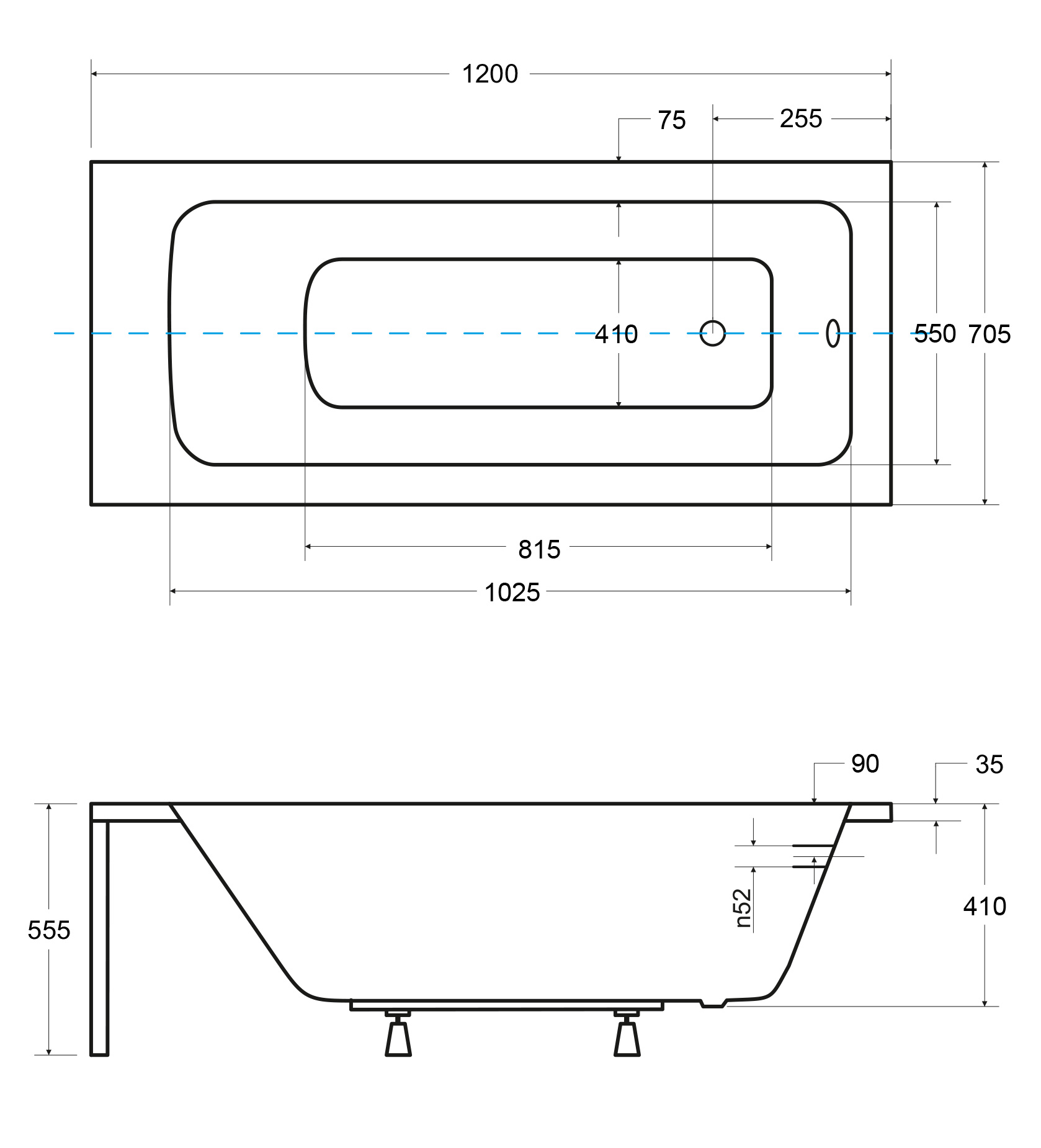 - Typ wanny: pod zabudowę, prostokątna