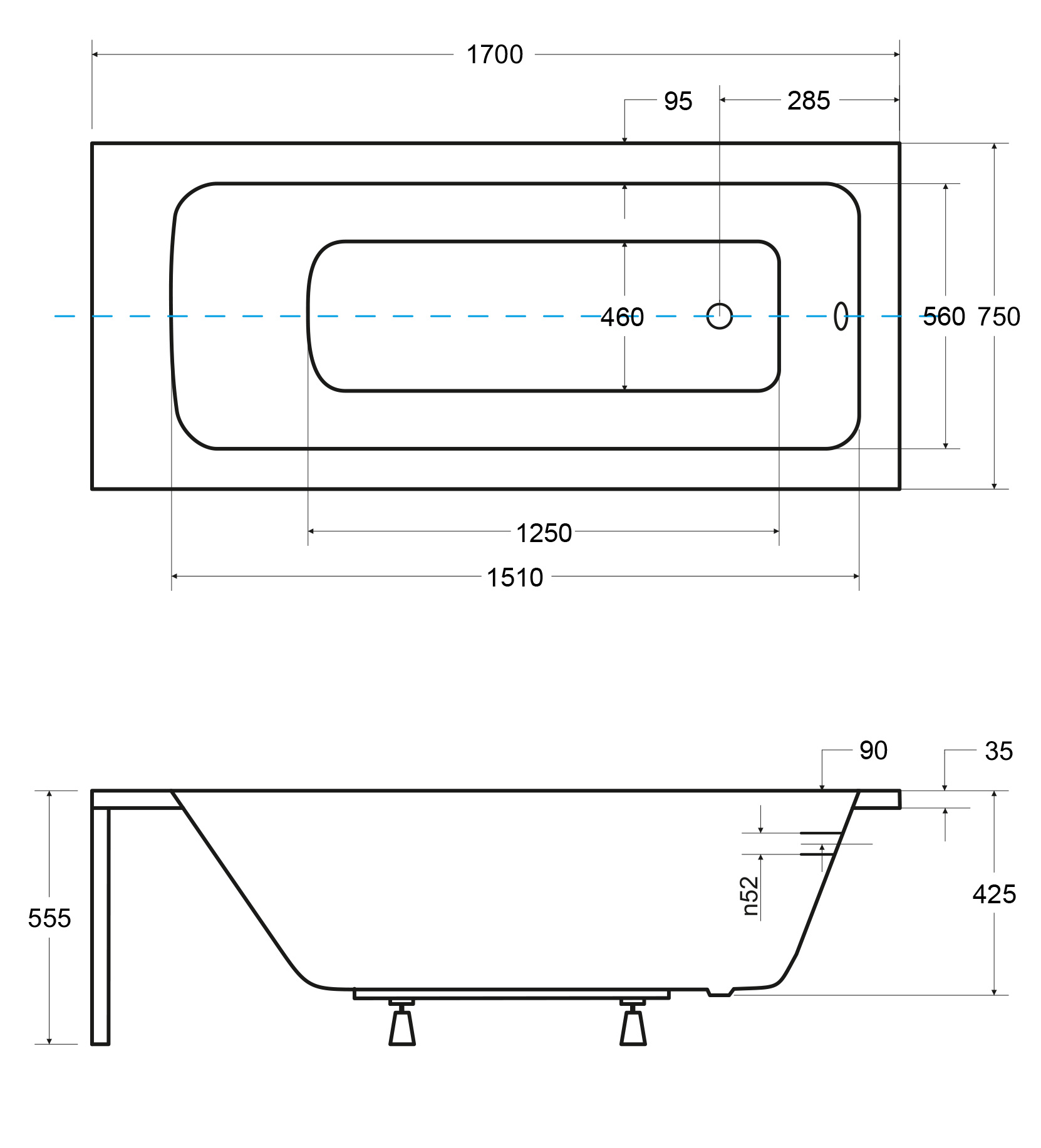 - Typ wanny: pod zabudowę, prostokątna