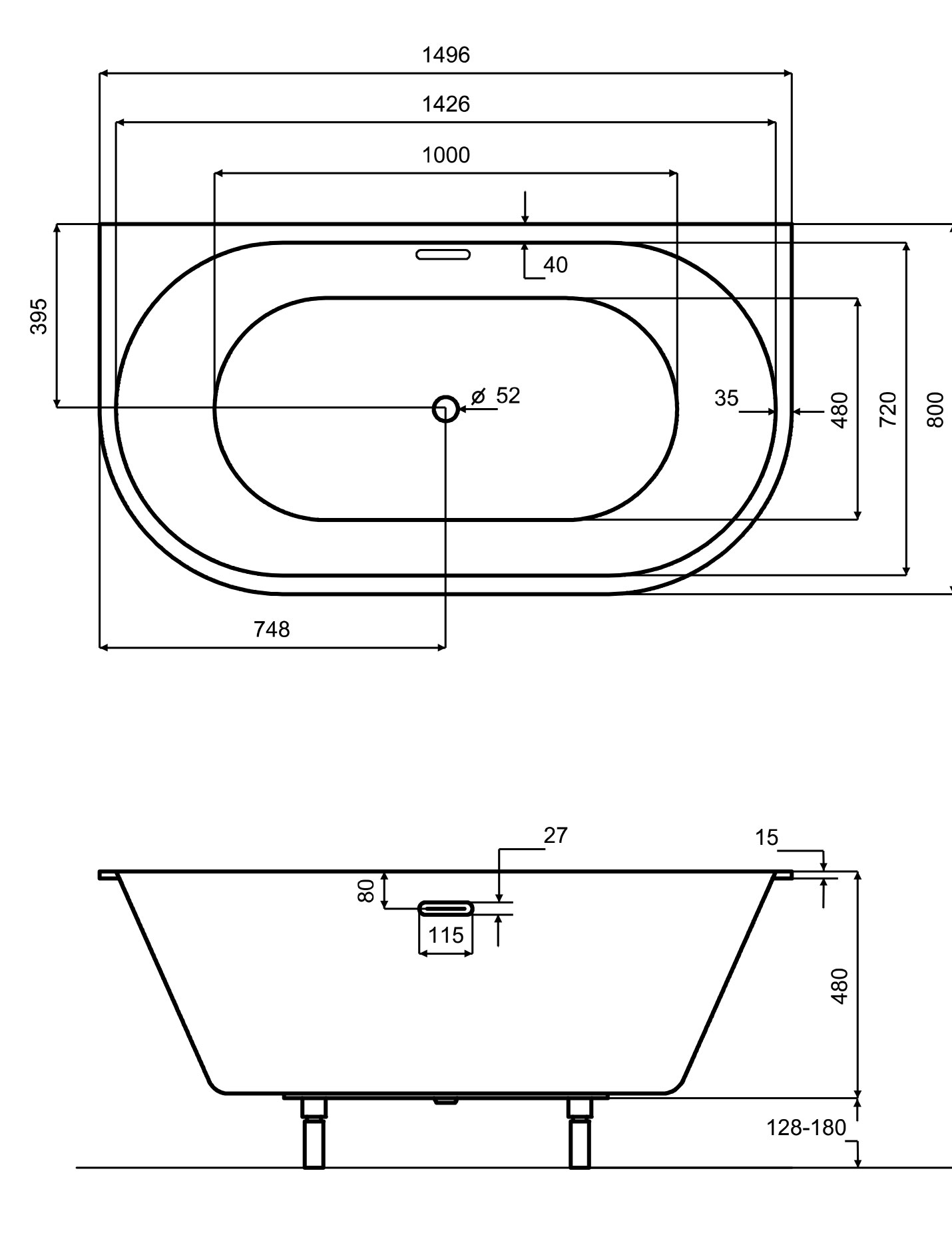 - wanna w komplecie z syfonem klik-klak czyszczonym od góry z przelewem slim w kolorze chrom oraz ze stelażem