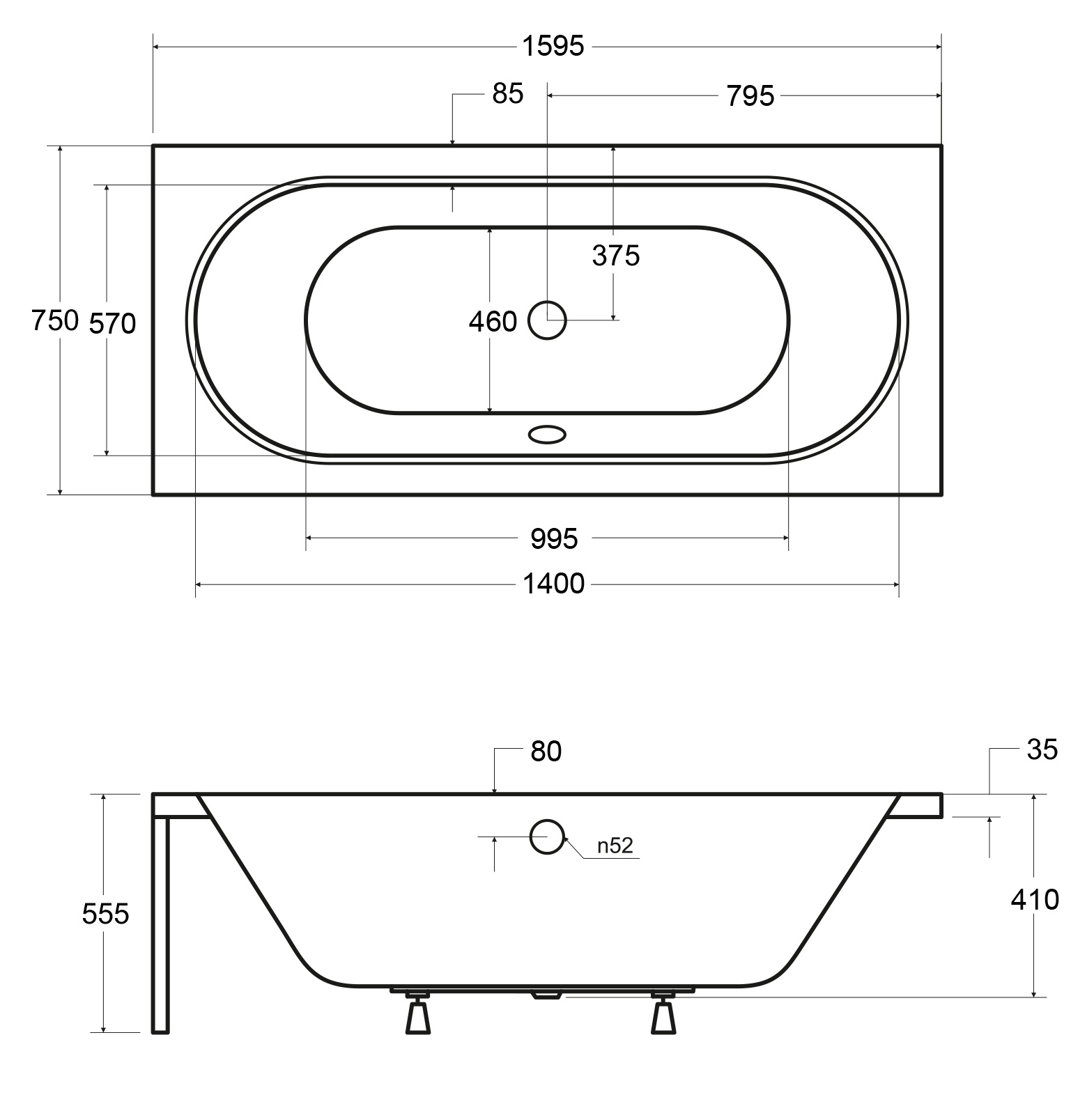 - Typ wanny: pod zabudowę, prostokątna