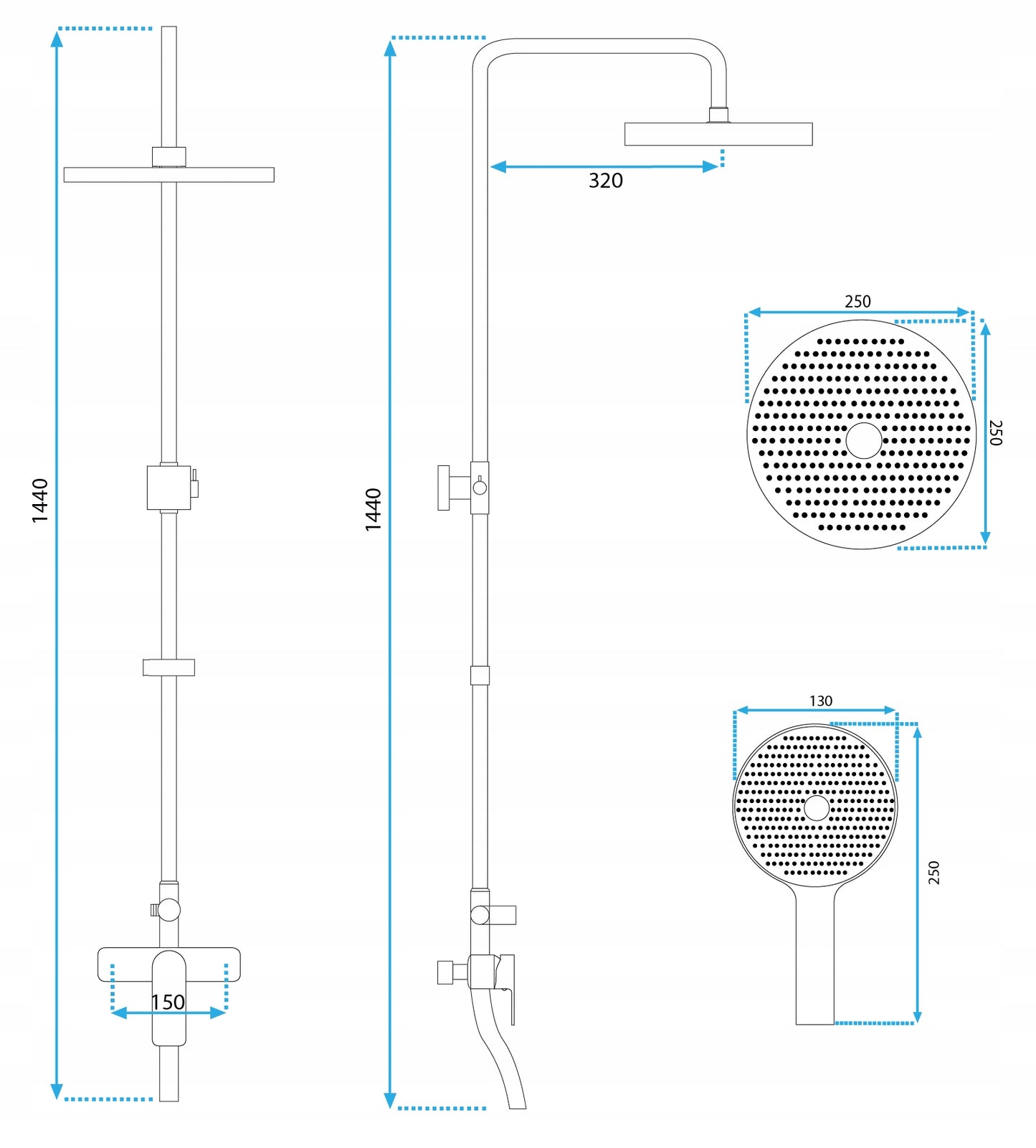 - W zestawie: wylewka dolna, słuchawka ABS, złącze kulowe umożliwiające dowolne ustawienie deszczownicy
