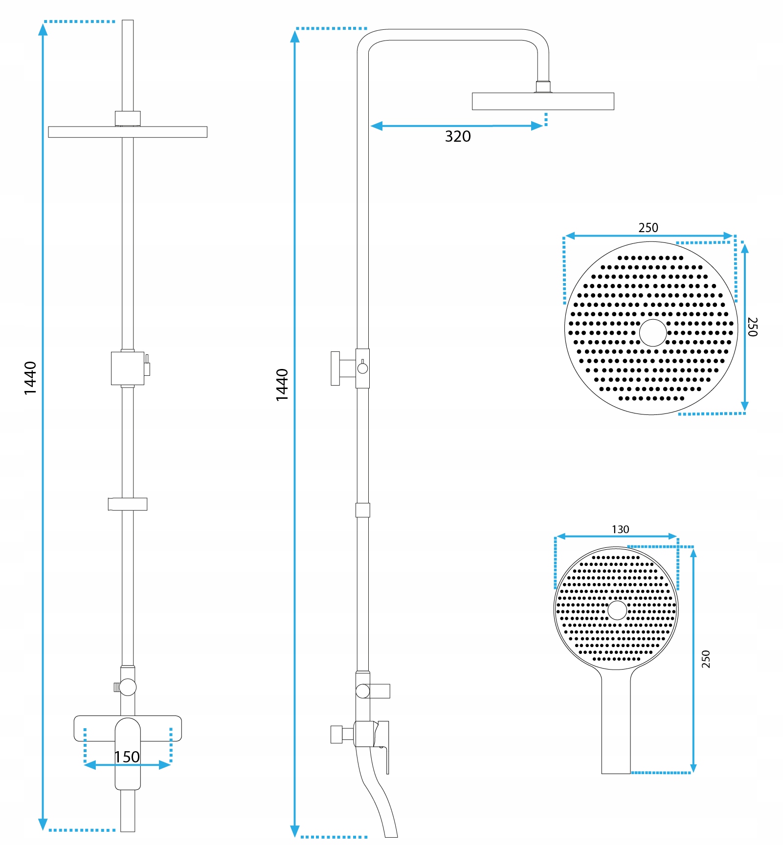 - W zestawie: wylewka dolna, słuchawka ABS, złącze kulowe umożliwiające dowolne ustawienie deszczownicy