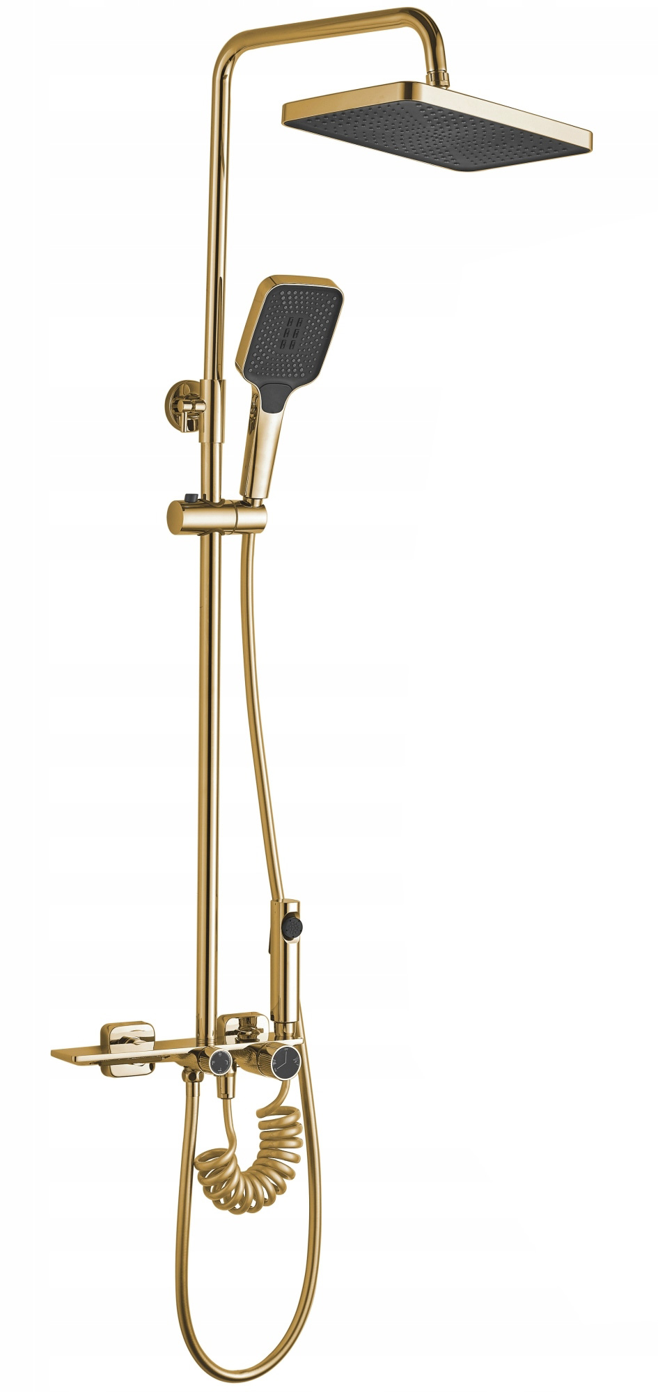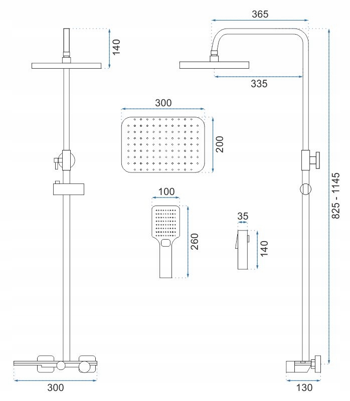 - W zestawie: ręczny zestaw natryskowy (bidetta), wylewka, wąż prysznicowy ze słuchawką, deszczownica, uchwyt do słuchawki