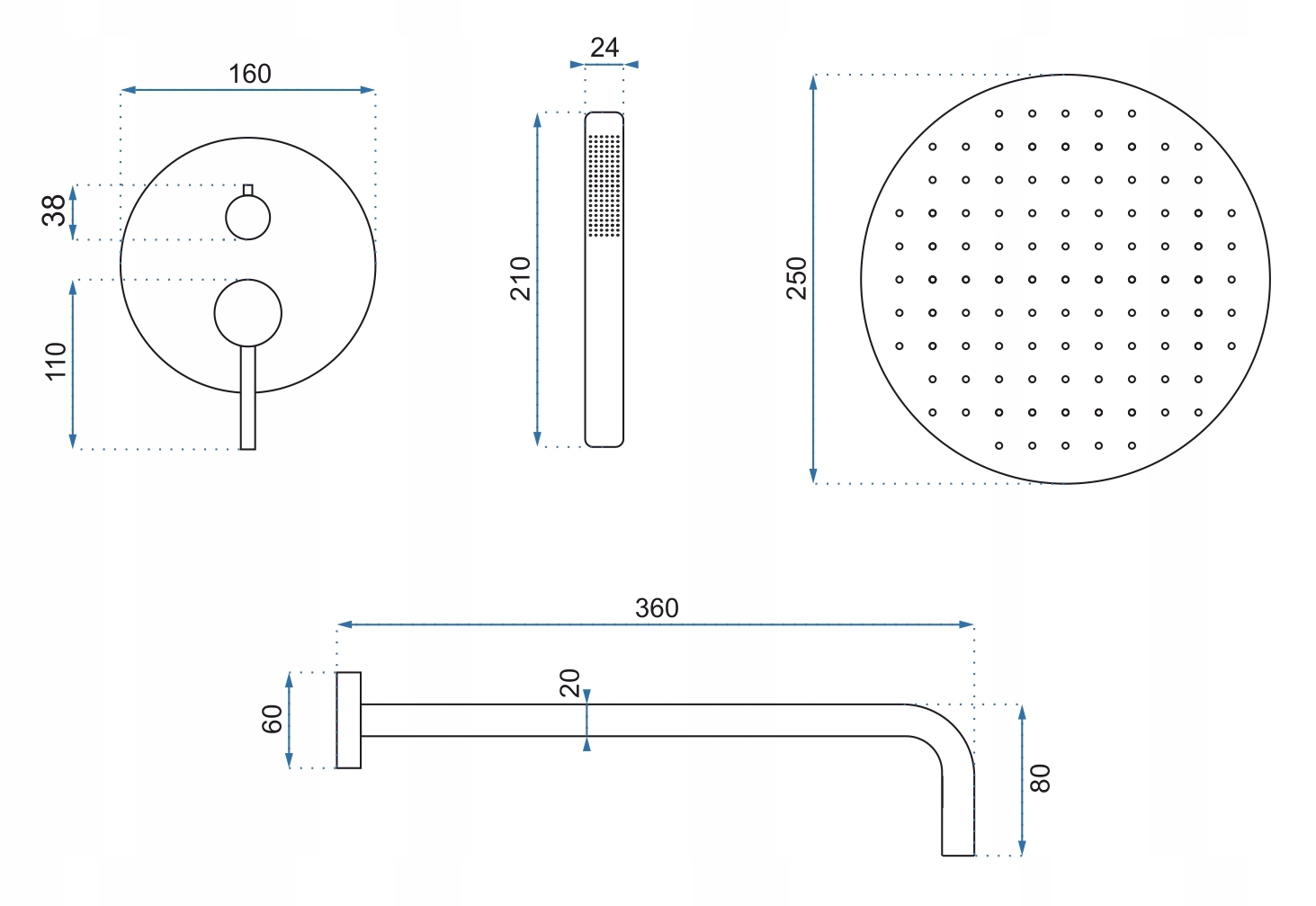 - Bateria: mieszacz, korpus mosiężny, głowica ceramiczna