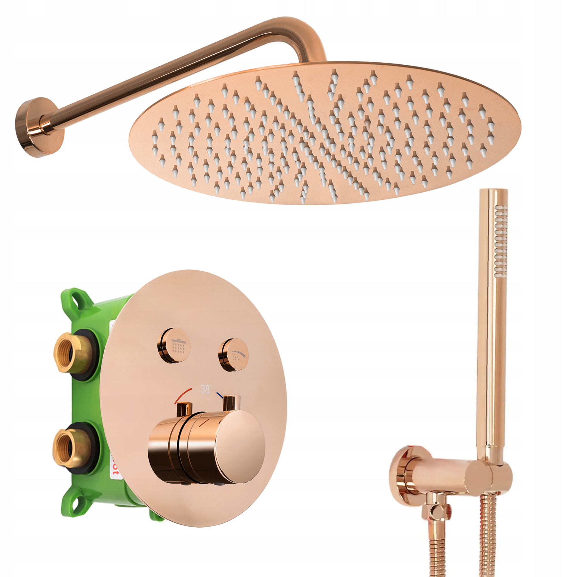 Zestaw LUNGO MILER złoty róż prysznicowy z termostatem