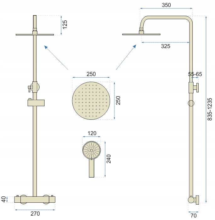 - Bateria: termostat, korpus mosiężny, głowica ceramiczna
